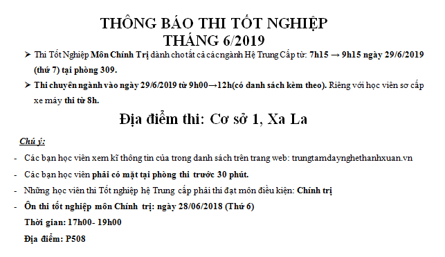 DANH SÁCH HỌC VIÊN THI MÔN CHÍNH TRỊ 29/06/2019