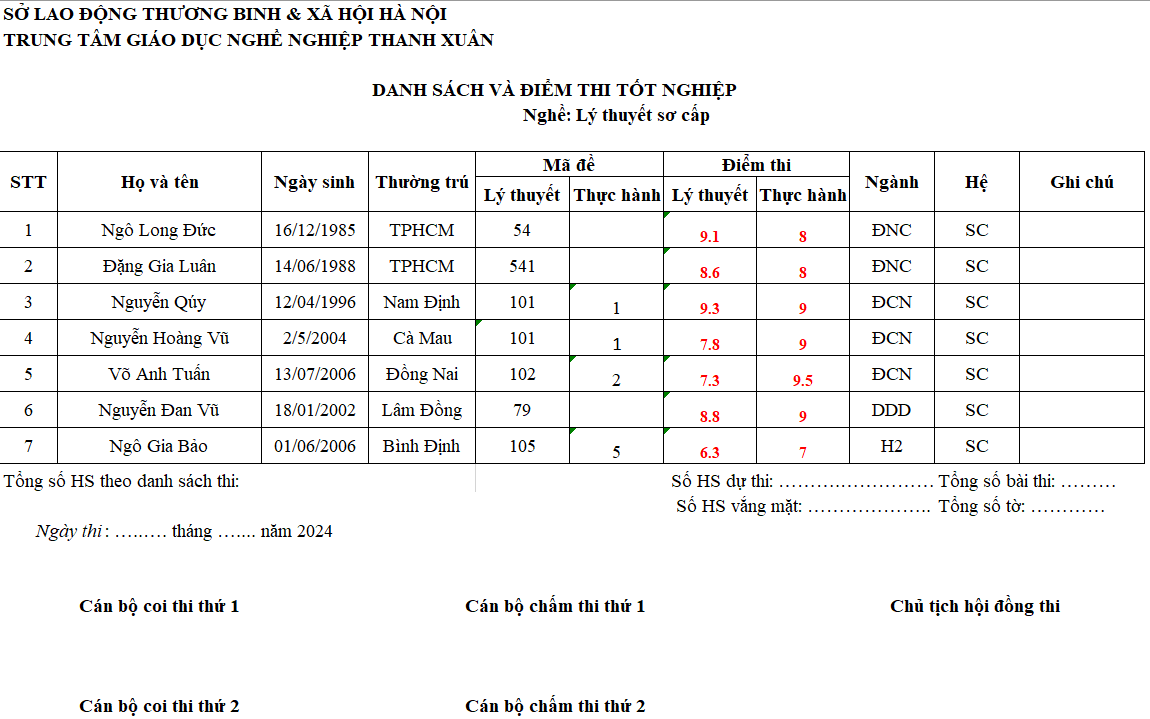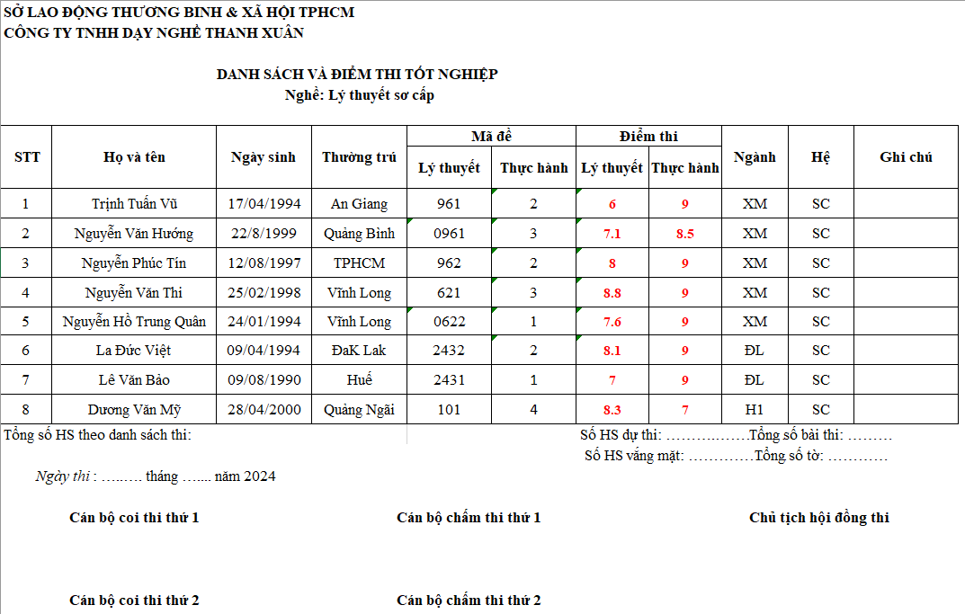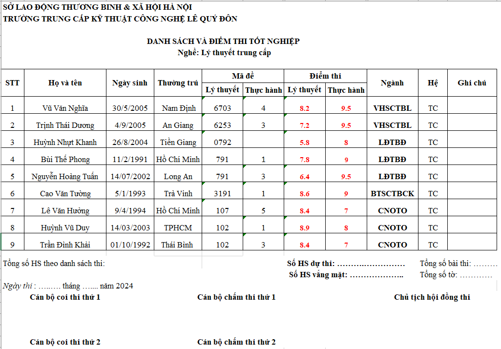 THÔNG BÁO ĐIỂM THI TỐT NGHIỆP THÁNG 9/2024