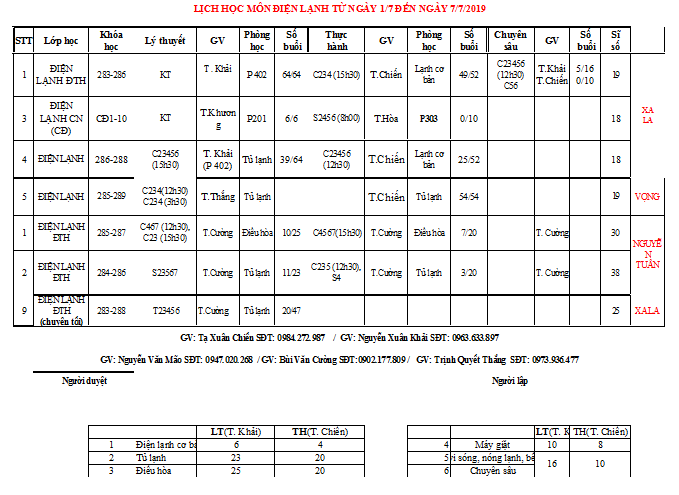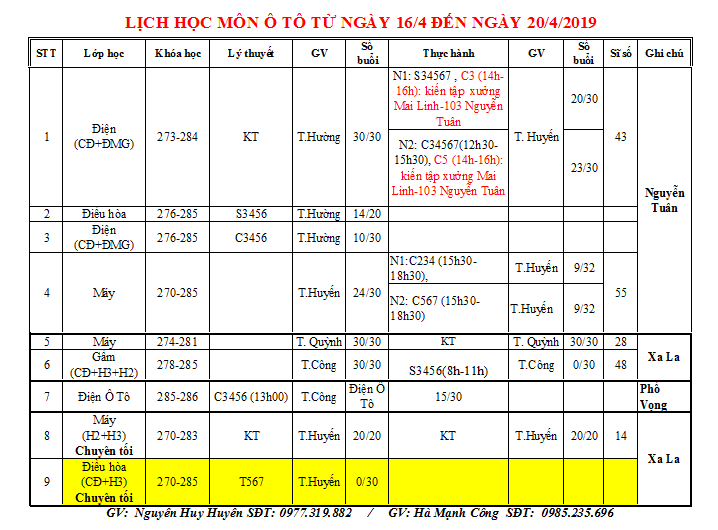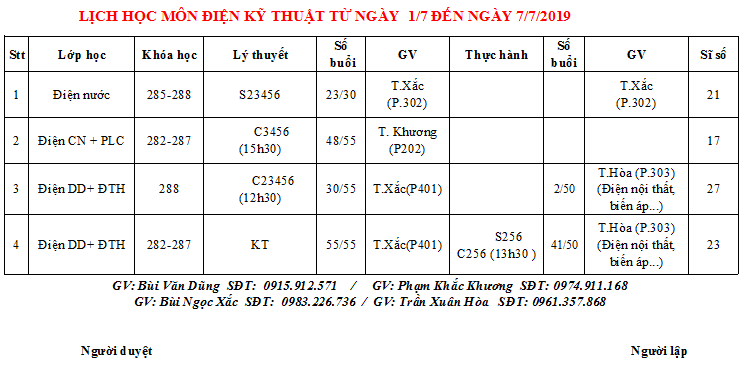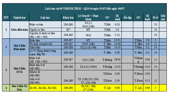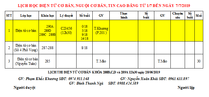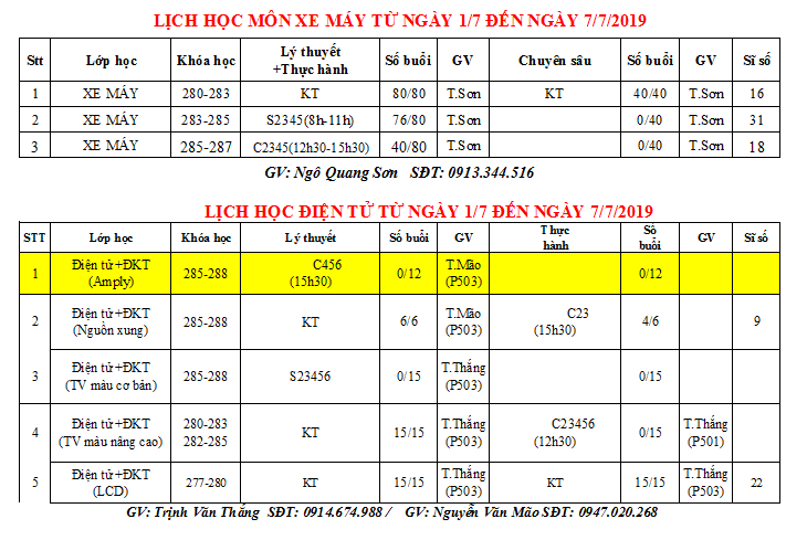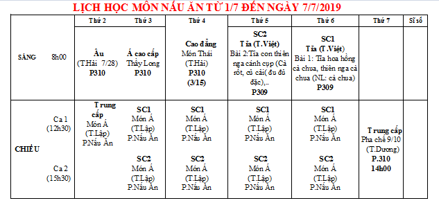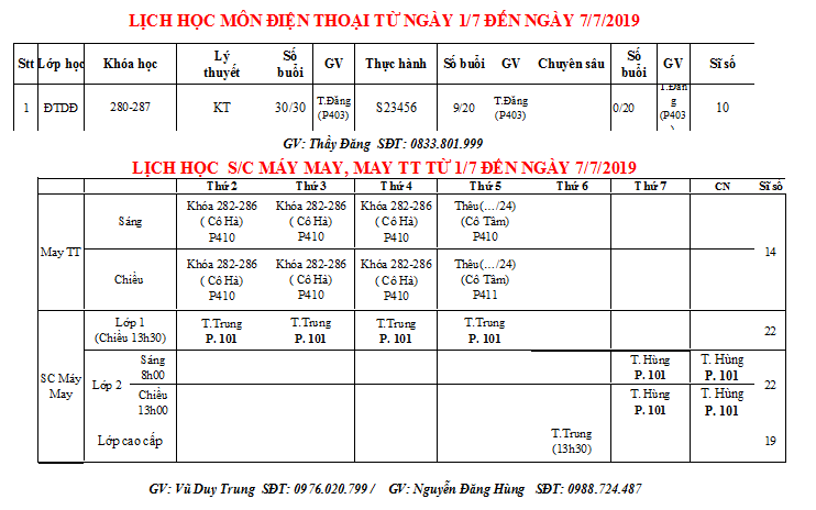 THÔNG BÁO LỊCH HỌC TUẦN MỚI TỪ 01/07 ĐẾN 07/07/2019