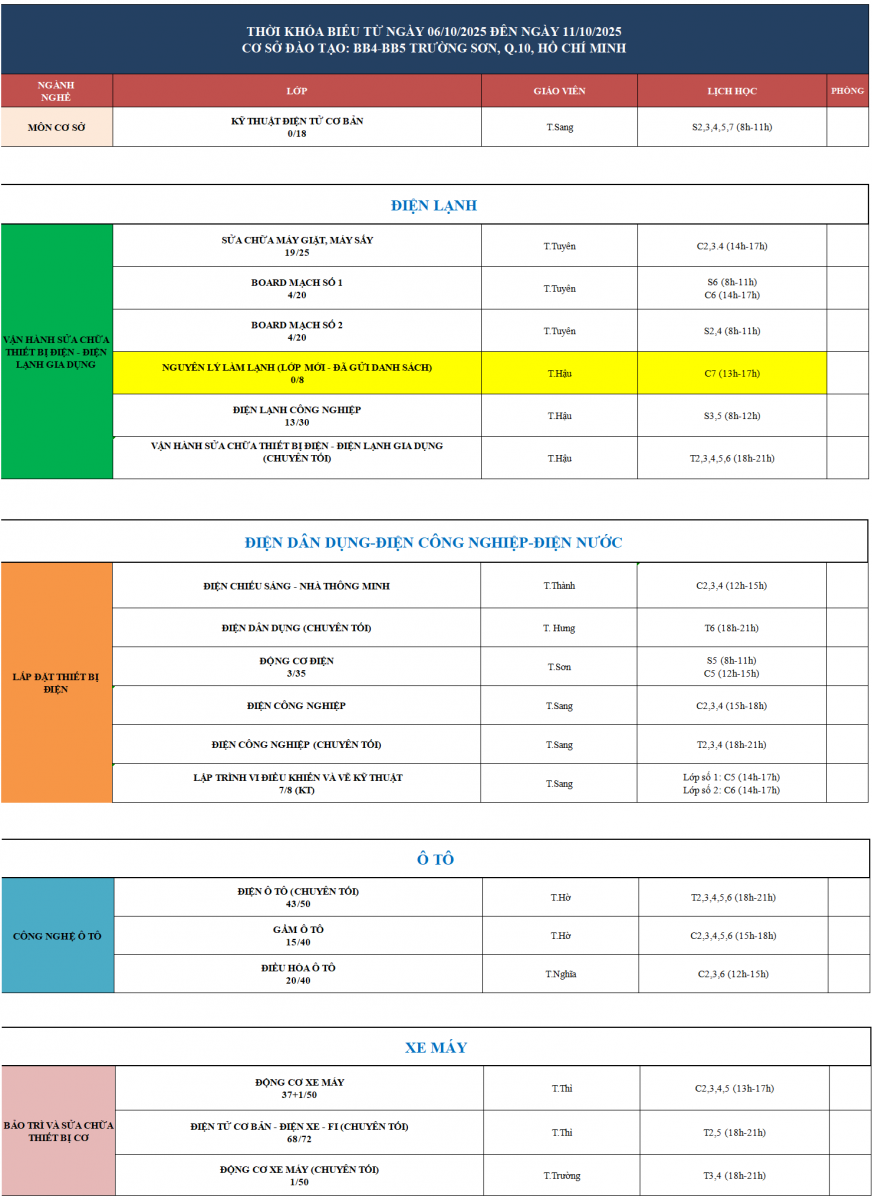 THÔNG BÁO LỊCH HỌC TUẦN MỚI TỪ NGÀY 06/10/2025 ĐẾN NGÀY 11/10/2025
