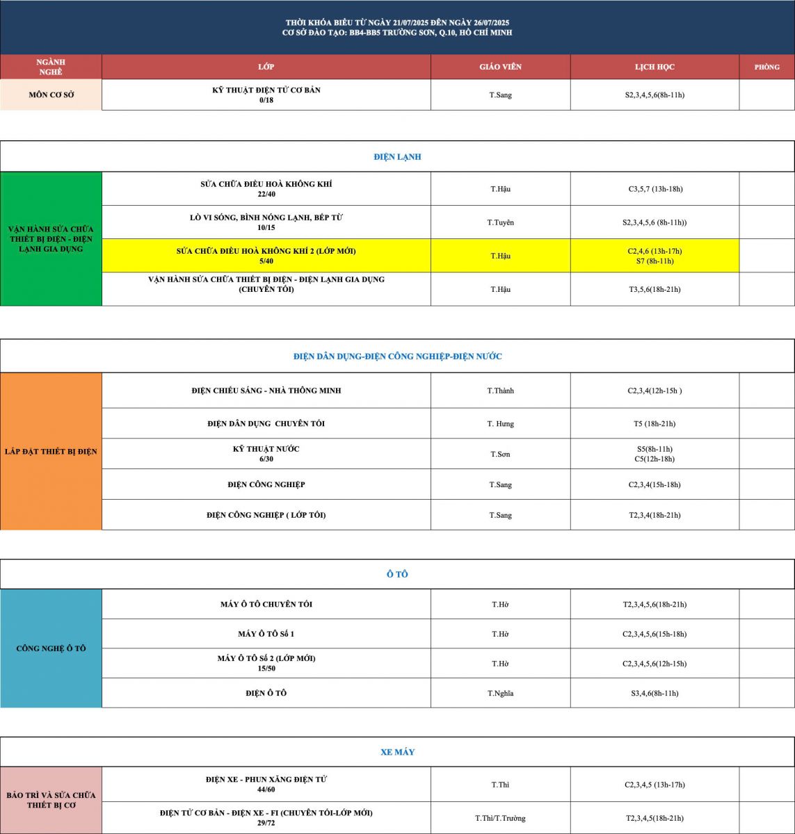 THÔNG BÁO LỊCH HỌC TUẦN MỚI TỪ NGÀY 21/7/2025 ĐẾN NGÀY 26/7/2025