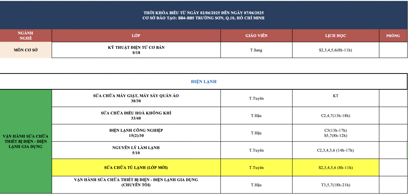 THÔNG BÁO LỊCH HỌC TUẦN MỚI TỪ NGÀY 2/6/2025 ĐẾN NGÀY 7/6/2025