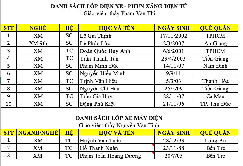 Ngành SC Xe Máy