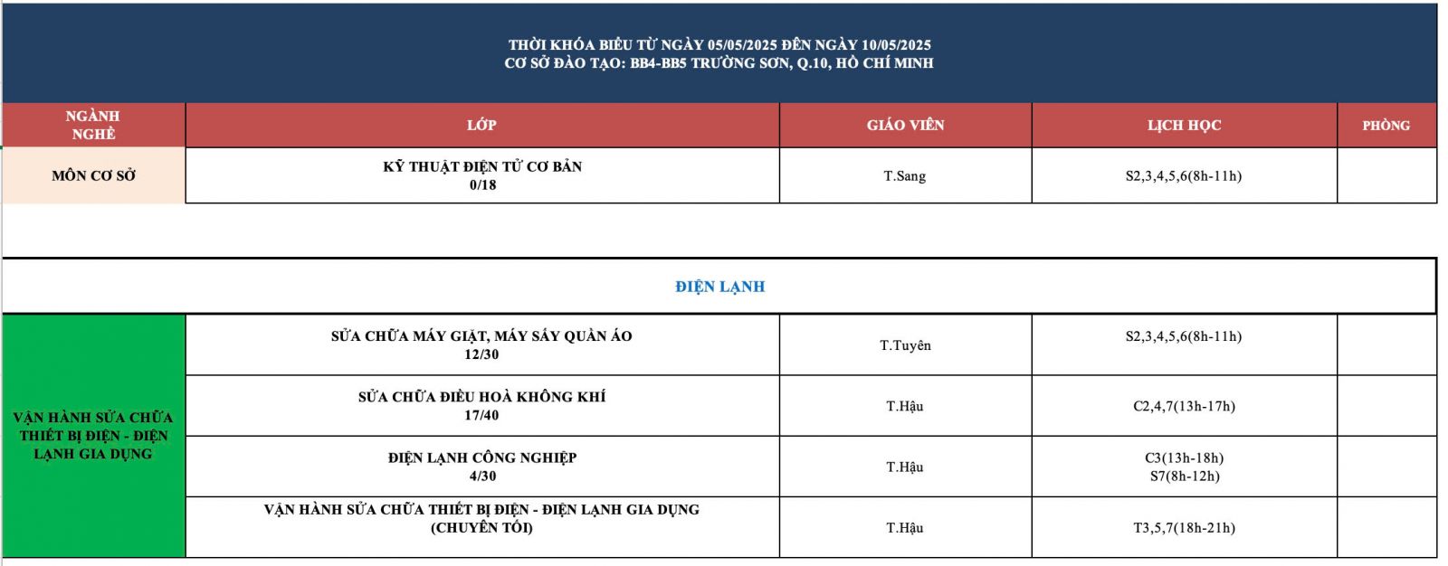 THÔNG BÁO LỊCH HỌC TUẦN MỚI TỪ NGÀY 5/5/2025 ĐẾN NGÀY 10/5/2025